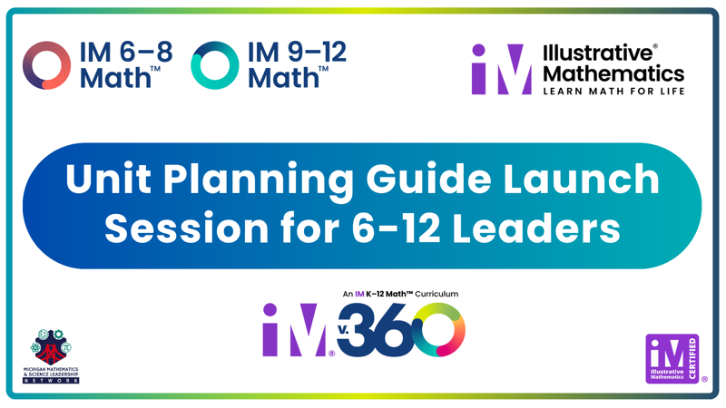 Access to the Unit Planning Guides is NOT provided in this session. School Leaders who wish to implement and lead Unit Planning Guide sessions with teachers must purchase the Unit Planning Guides separately at a one-time cost of $3,000. Please contact Danielle Seabold at seaboldd@mimathandscience.org before this session to purchase the 6-12 Unit Planning Guides.
