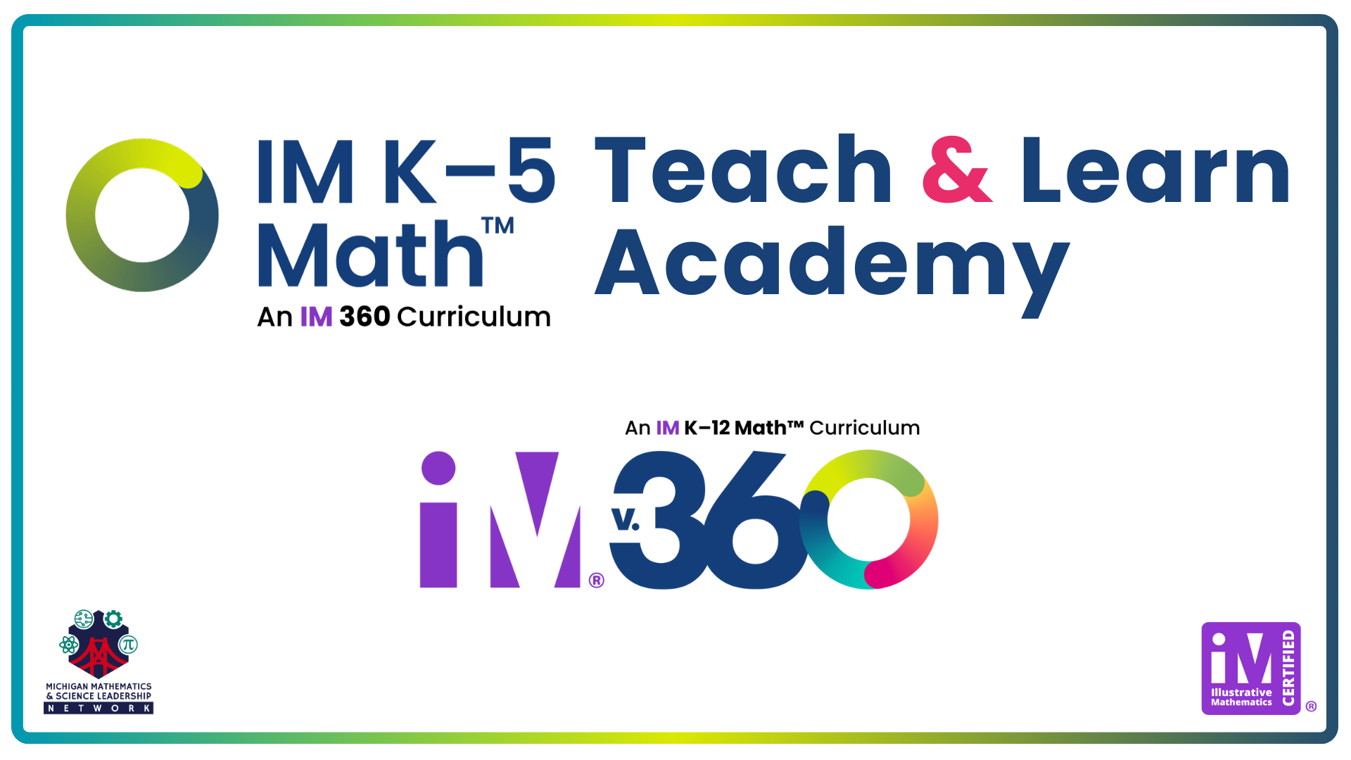 Educators will experience a lesson, investigate and reflect on content and language routines, explore various supports, understand assessment materials, and begin to use student thinking as a vehicle for productive planning. They will gain experience navigating the partner website and learn how to find teacher and student materials. This academy is designed to get educators ready to begin using IM v.360 in their classrooms.