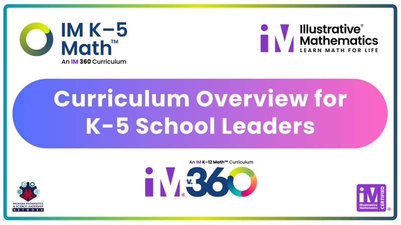 This session provides school leaders an introduction to IM K–5 Math. In it, you'll experience and explore the structure of a problem-based lesson while also focusing on supporting teachers transitioning to their new curriculum.